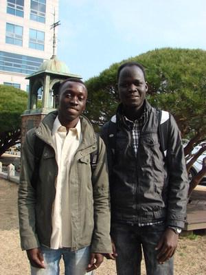 그 톤즈에서 온 두 청년, 존 마옌 루벤(26·오른쪽)과 토마스 타반 아콧(28)이 지난 2일 외국인 특별 전형으로 인제대 의과대학에 입학했다. “12학번입니다. 하하.” 나이는 토마스가 두 살 더 많지만 키는 존이 한뼘 정도 더 컸다.